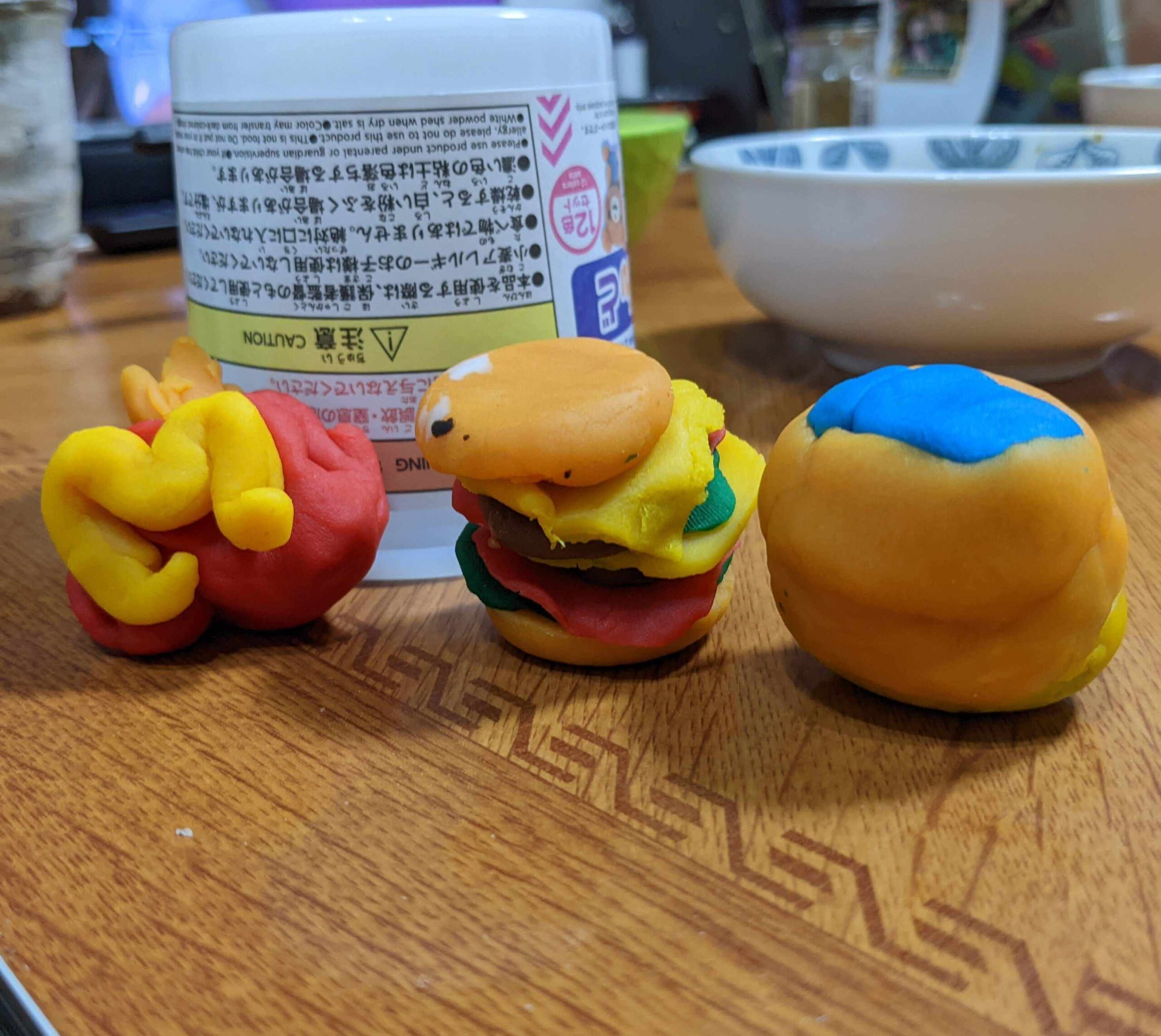 5歳ですでに物の概念の理解(ハンバーガーはこういうものだ)ができている。そしてそれを粘土で表現できるってすごいね。